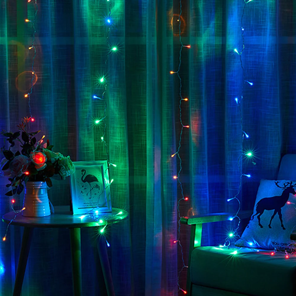 LED curtain lamp Christmas decoration transparent PVC wire with 8 function controller 220v string lights
