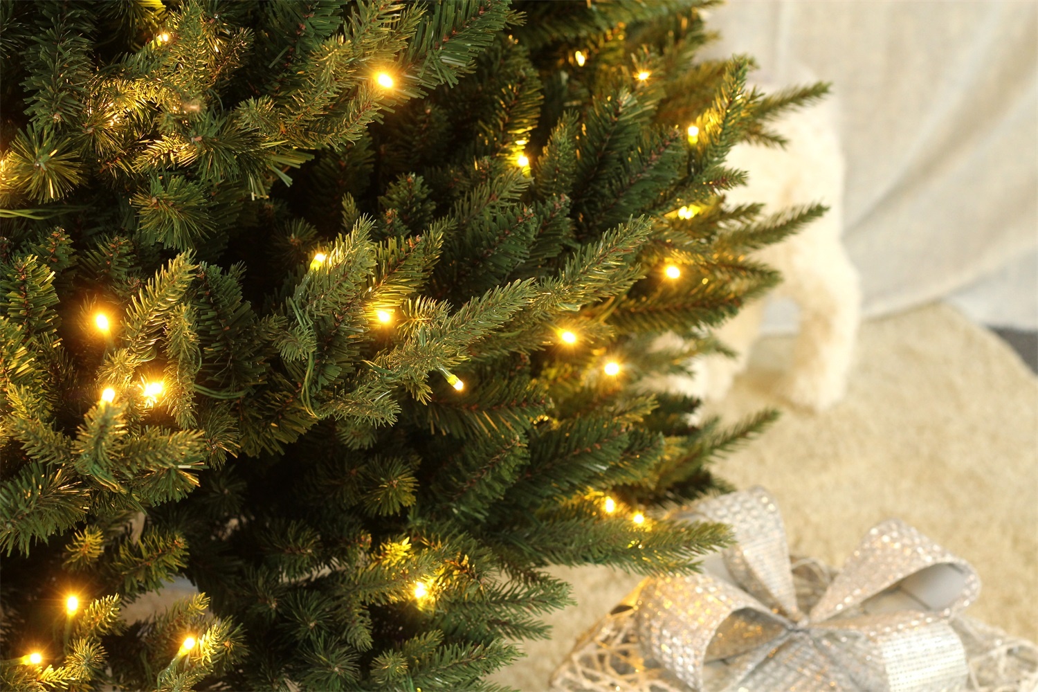 Light Green PVC and PE mix hinged tree LED Artificial Christmas Tree for Christmas Decoration