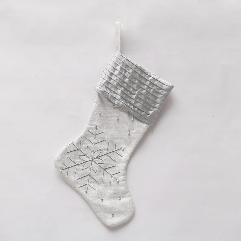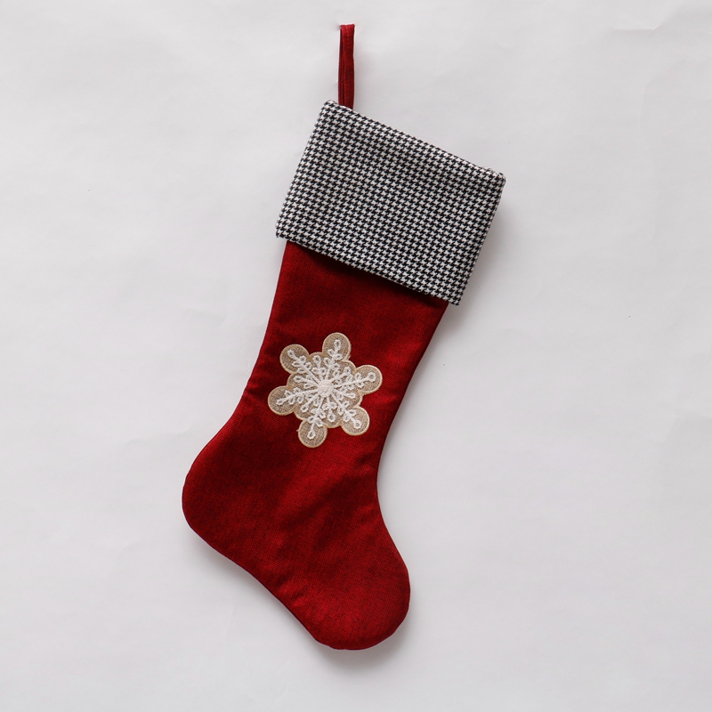 Luxury 50cm embroidered snowflake pattern and bead Christmas decorating socks Christmas stocking