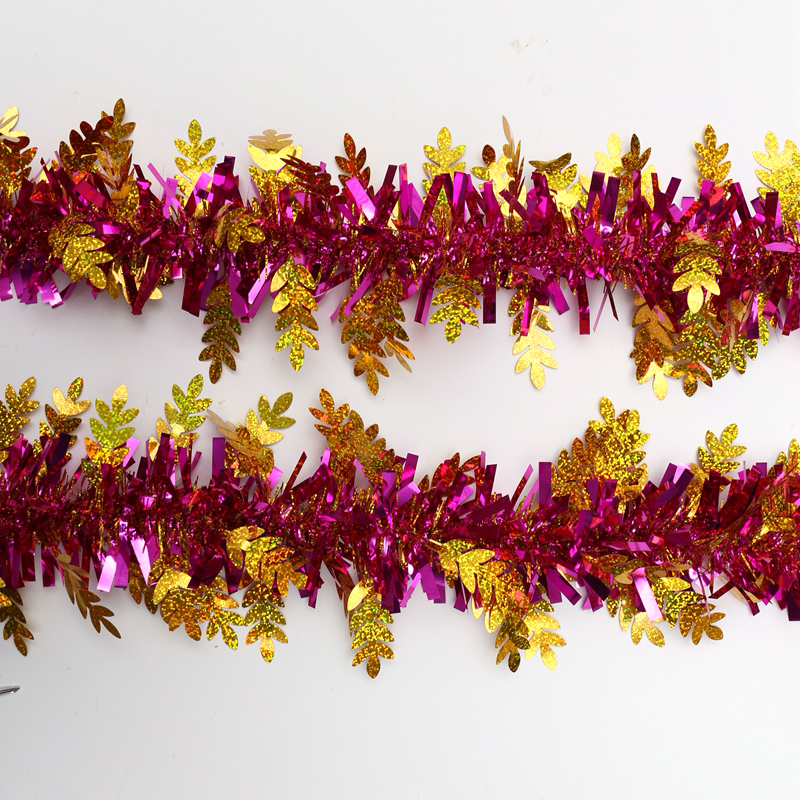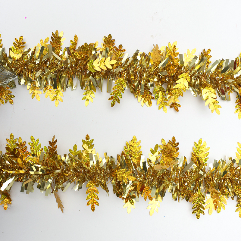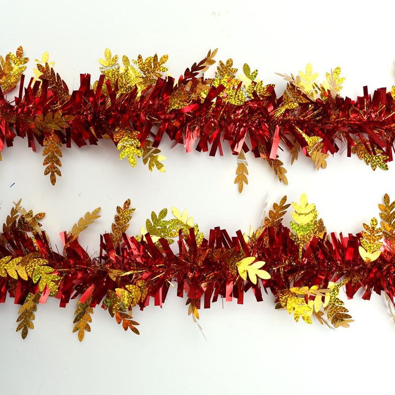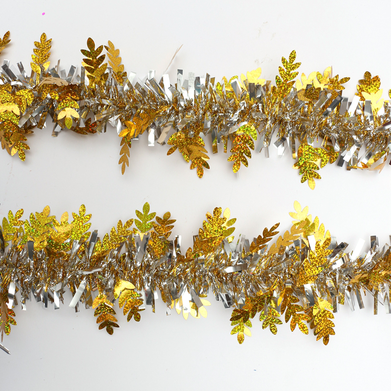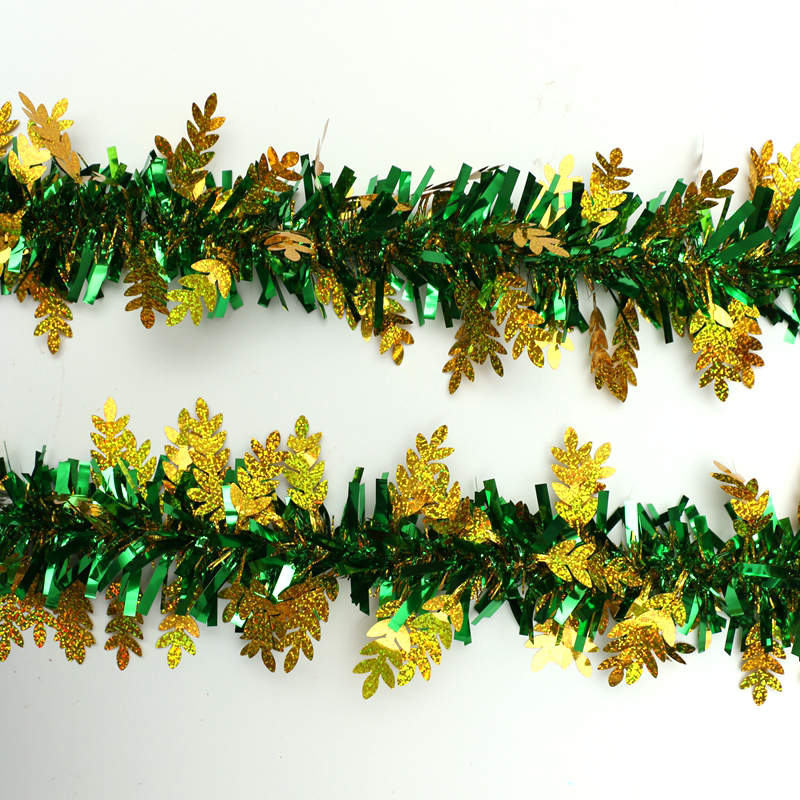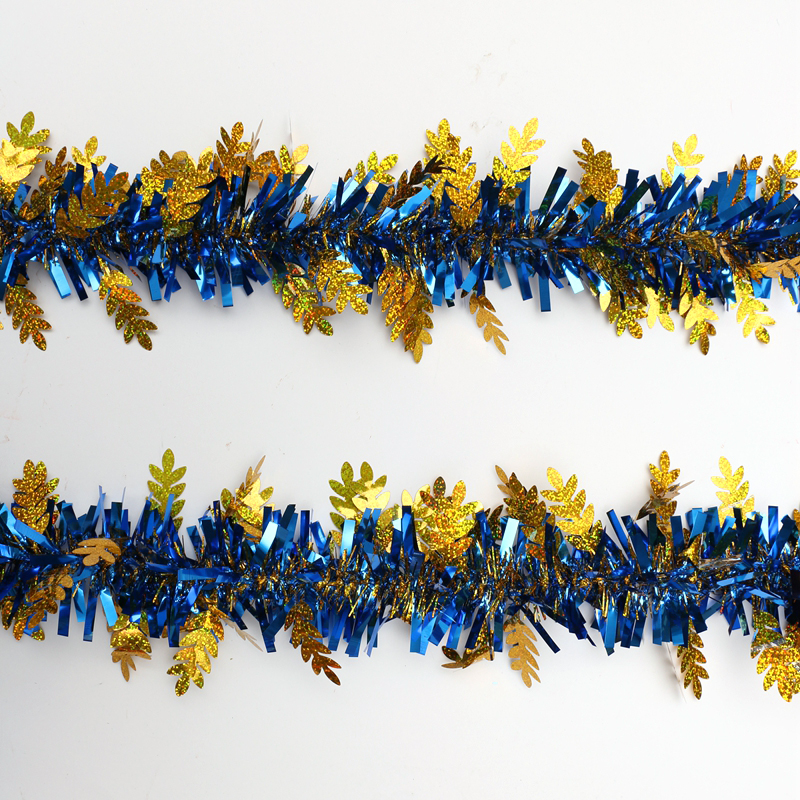 luxury artificial Tinsel 2M PET Indoor Decoration with leaf ornaments Tinsel Garland