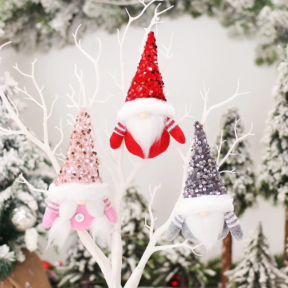 Luxury Christmas decorations Cartoon Santa Claus with glitter beads gnome faceless man dolls