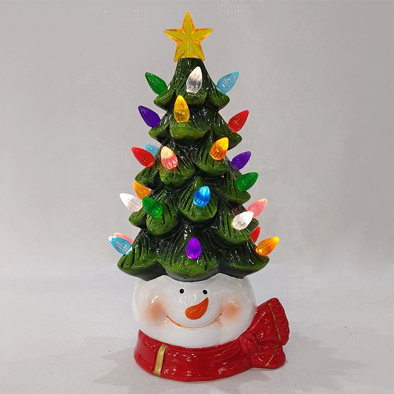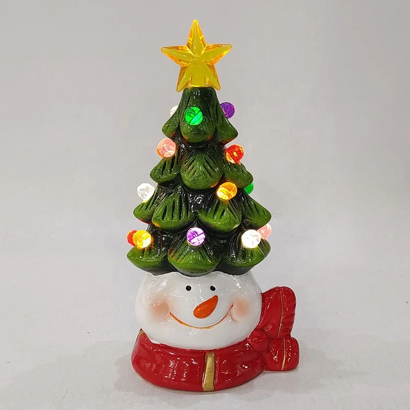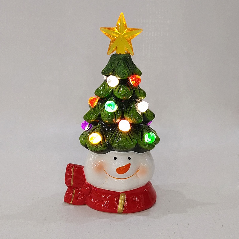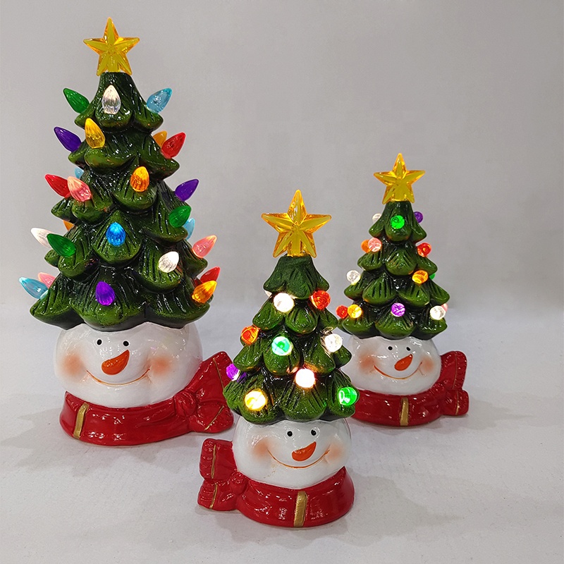 New Arrival Multicolor LED Battery lighting Xmas Table Decoration Ceramic Snowman