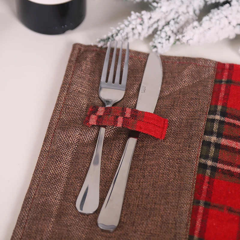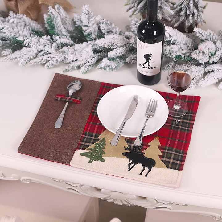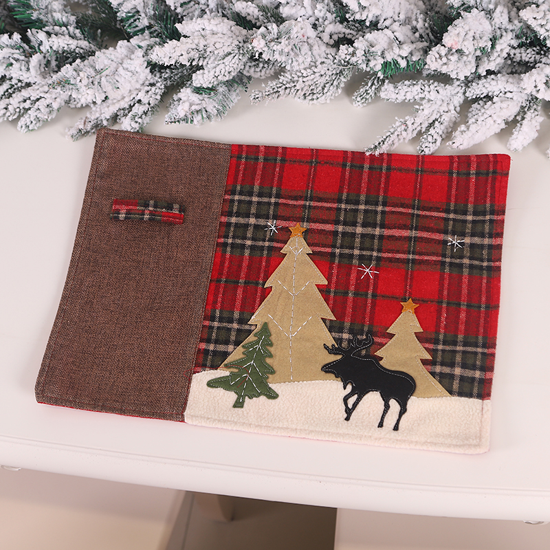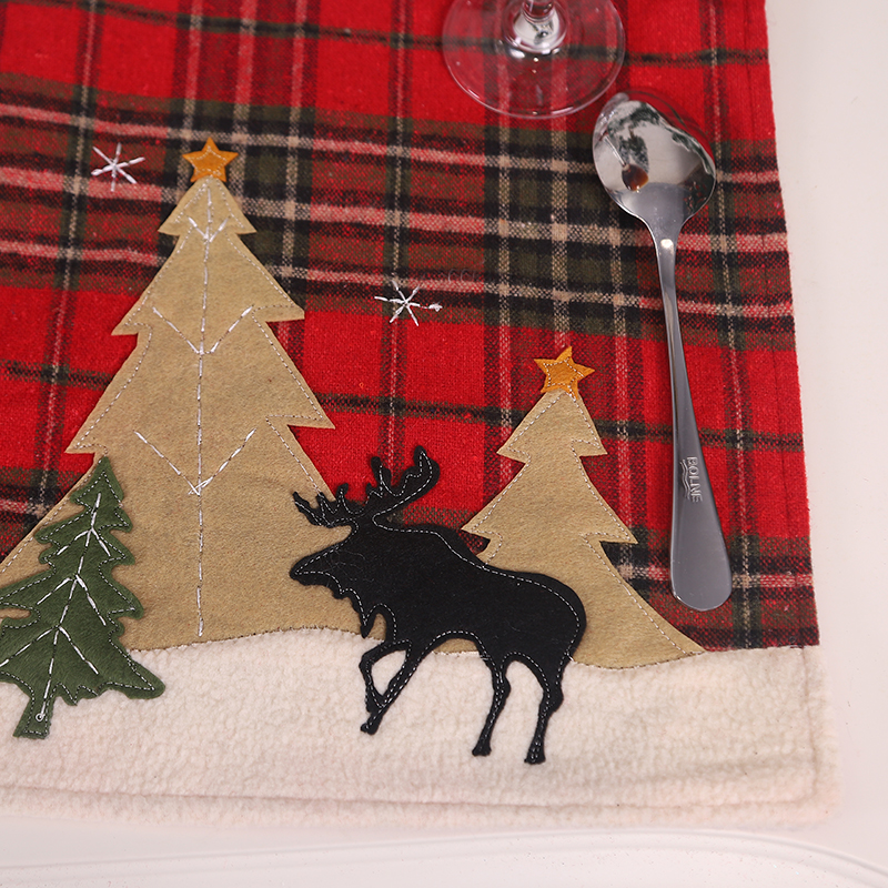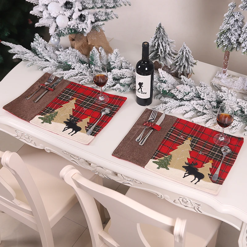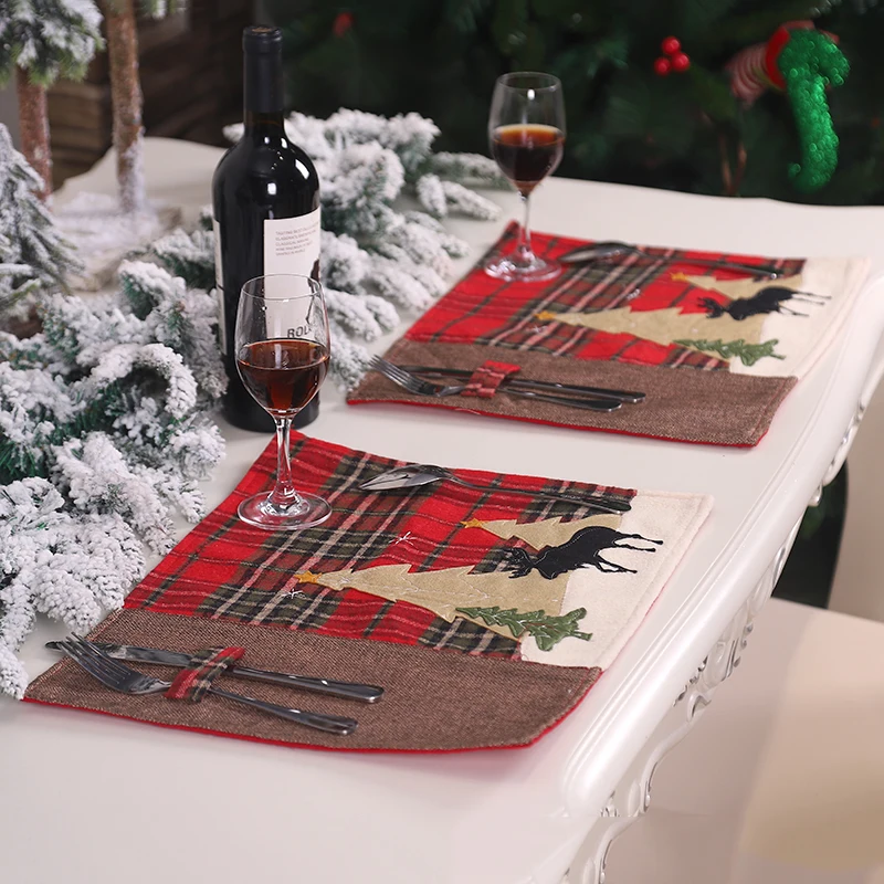 New Christmas felt decor factory design and supply plaid cloth table mat mats for knives and forks plate