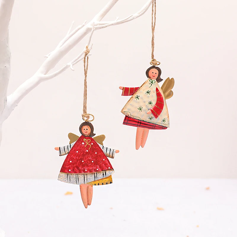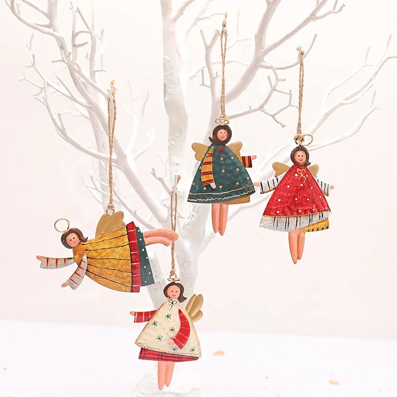 New Design Christmas Xmas Tree Hanging Ornament Hand Painted Metal Cute Angel
