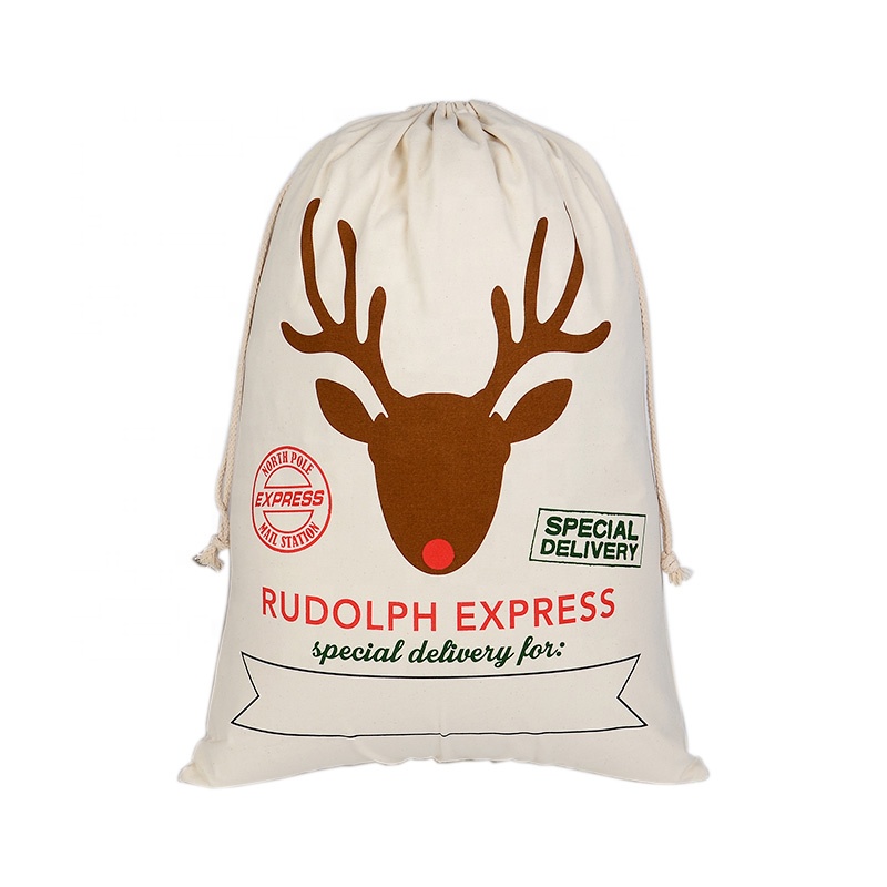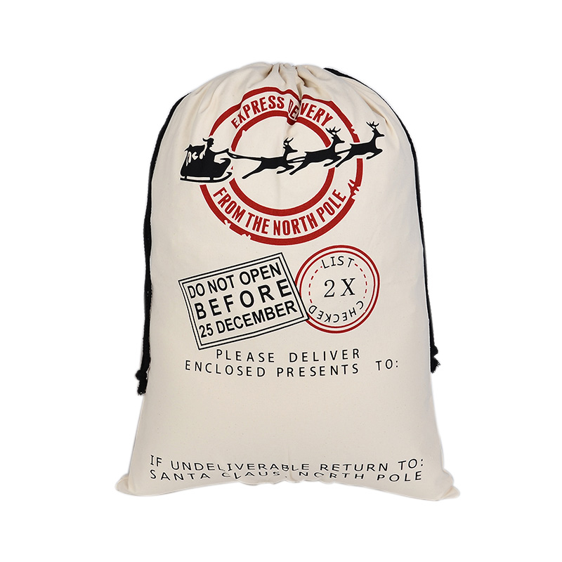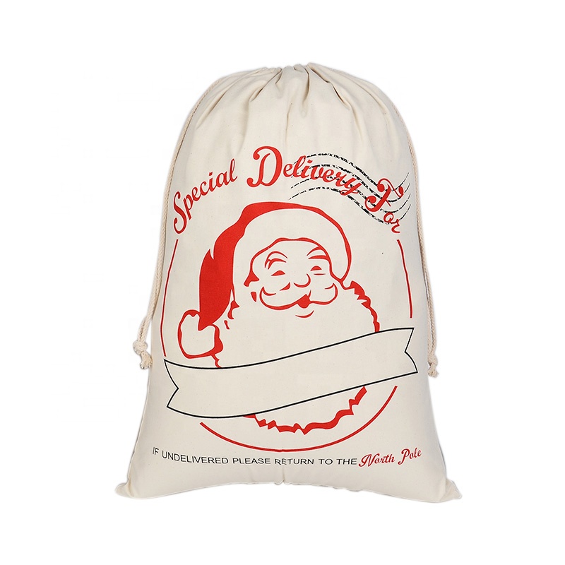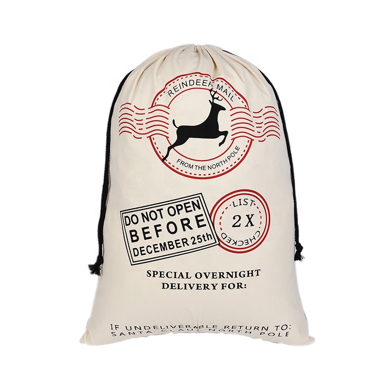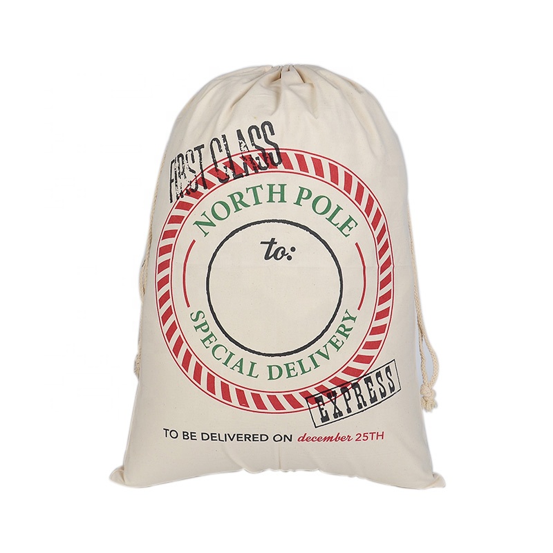 New Design Eco-friendly Cotton Christmas gift bag drawstring christmas gift bag