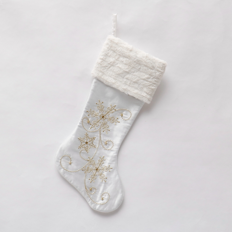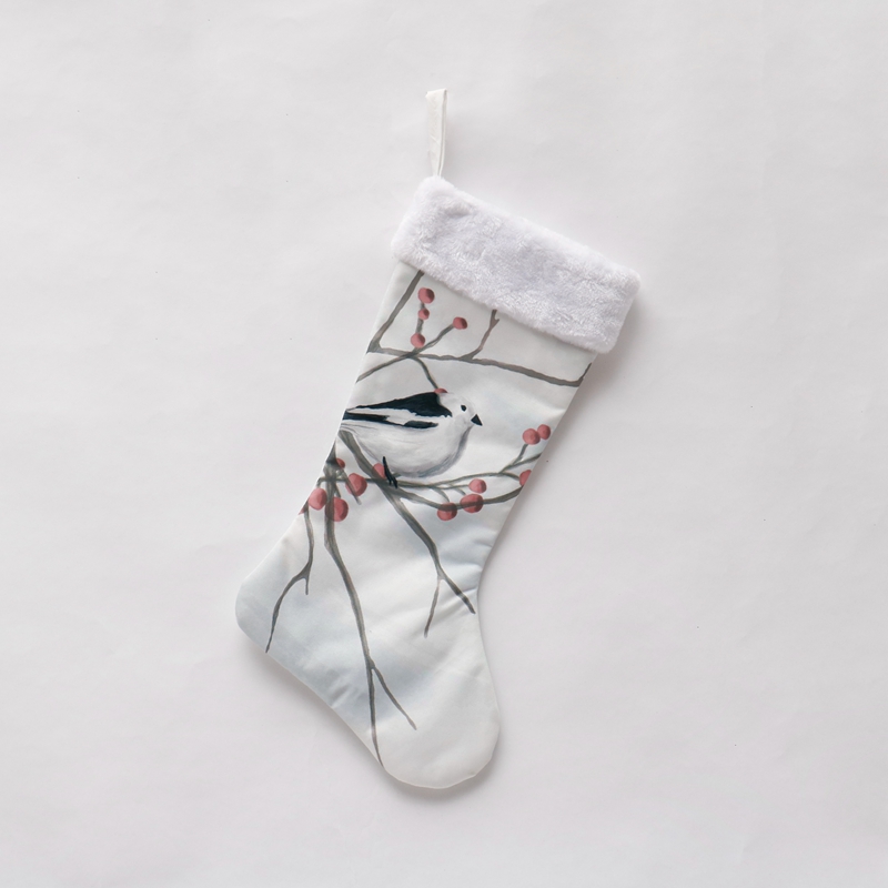 NEW Polyester 50cm decorated Christmas socks with flower and bird patterns white Christmas stocking