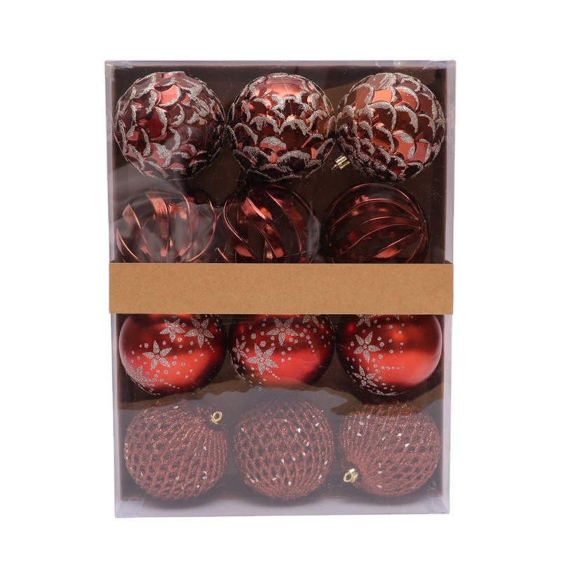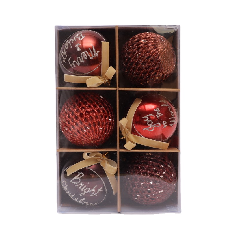 New wholesale custom 8cm mix 6 pcs coffee plastic Christmas ball set with different craft for home and party decoration for sell