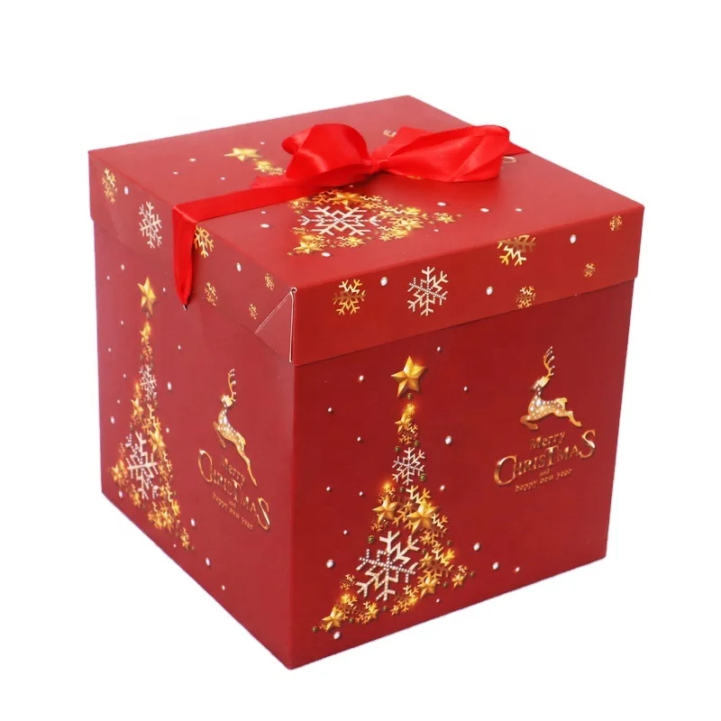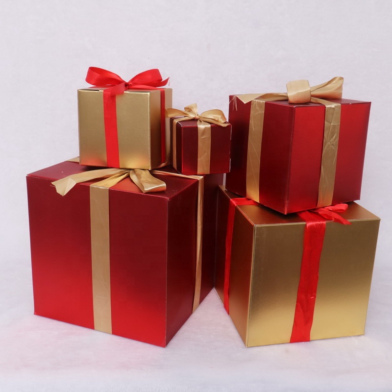 New Year Christmas decoration high quality with red bow Christmas paper gift box