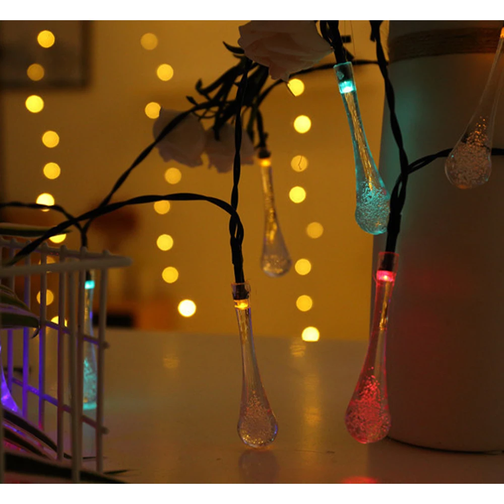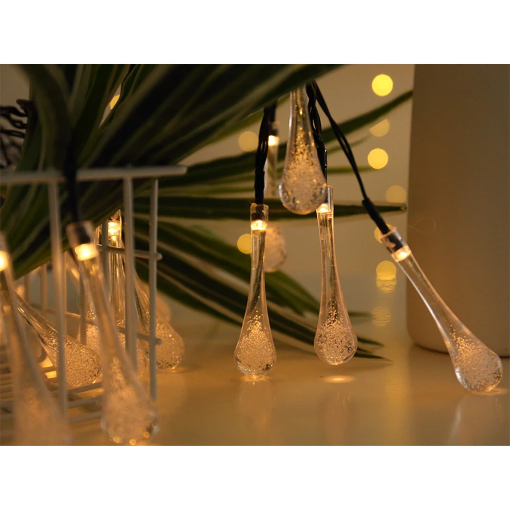 Outdoor solar powered lamp string 5 meters 20 lights 8 function Solar water drop lamp string holiday lights