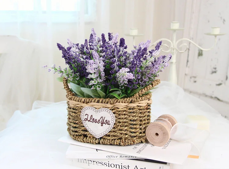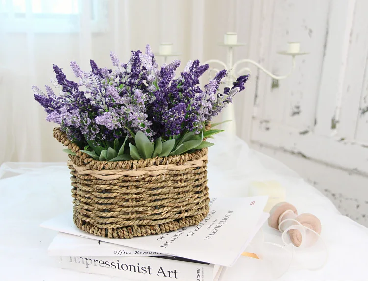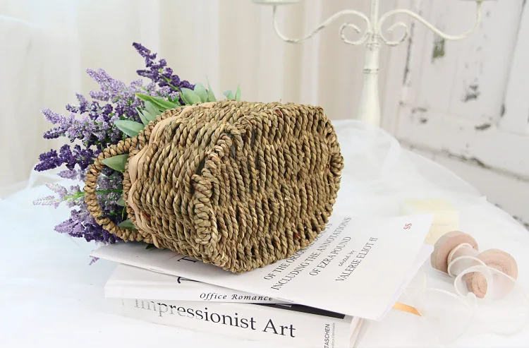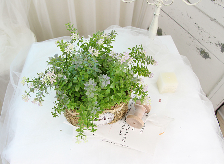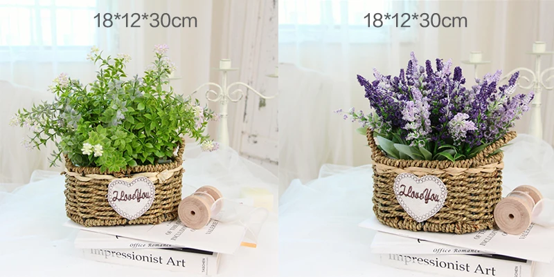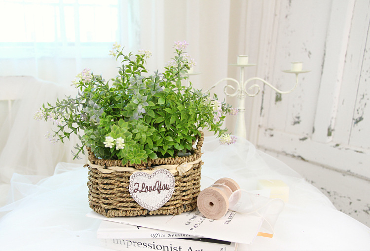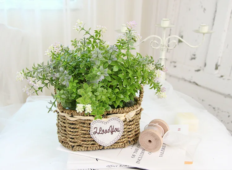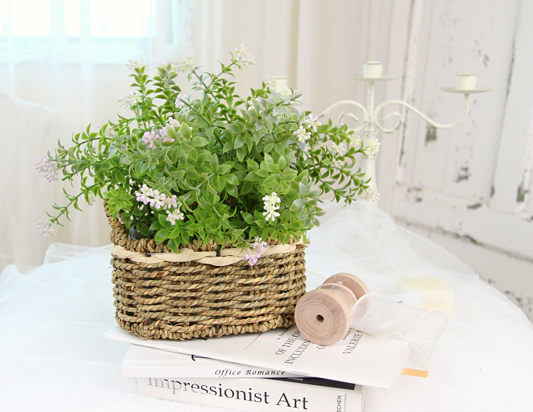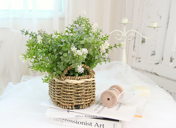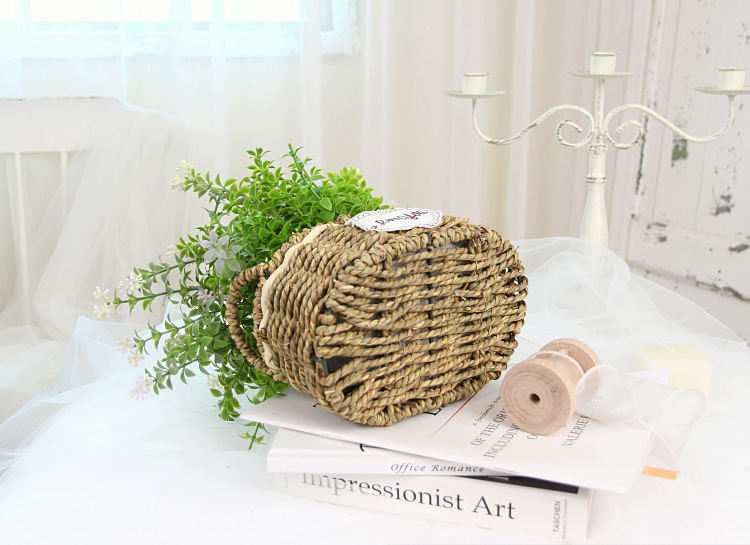 Portable Straw Flower Basket Artificial Green Plant Desktop Living Room Wedding Party Decor