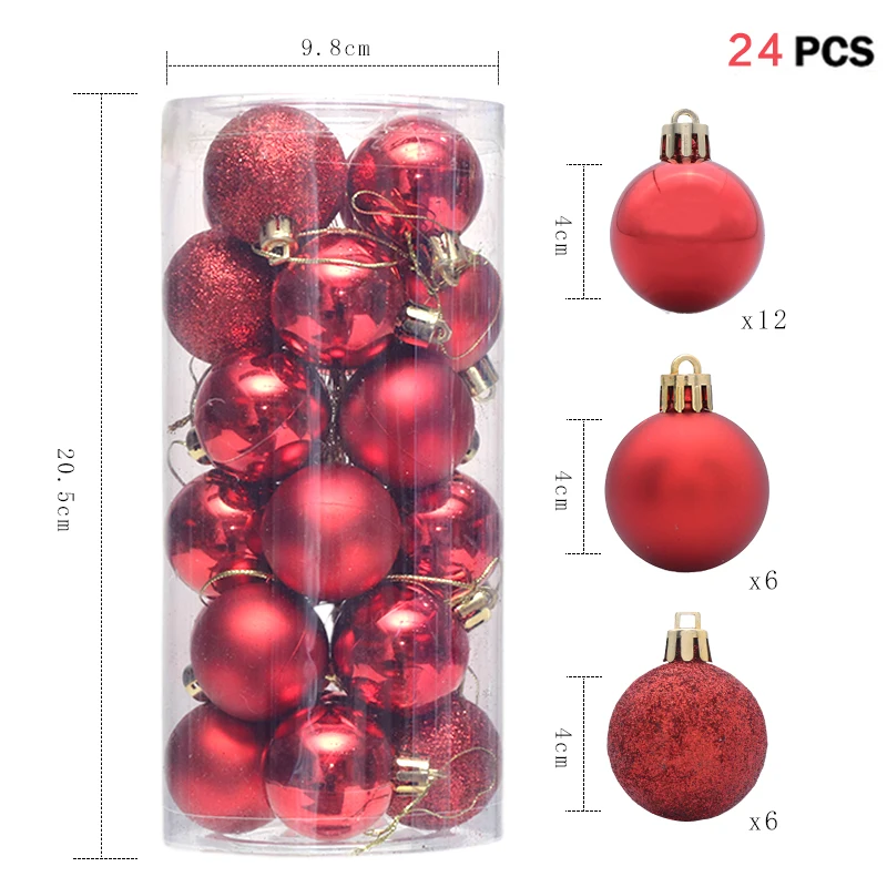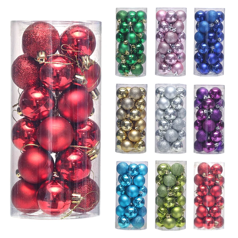 Promotional 4cm 24pcs ball set red gold silvery pink sale online decoration christmas ball