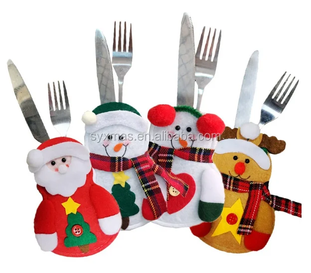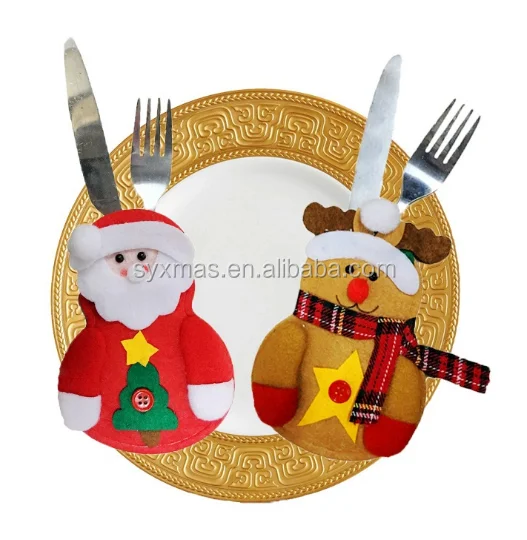 Promotional christmas knife and fork bag holder deer cutlery holder table decorations