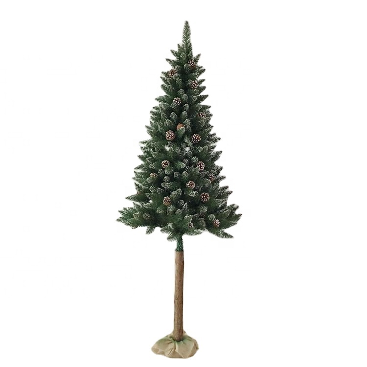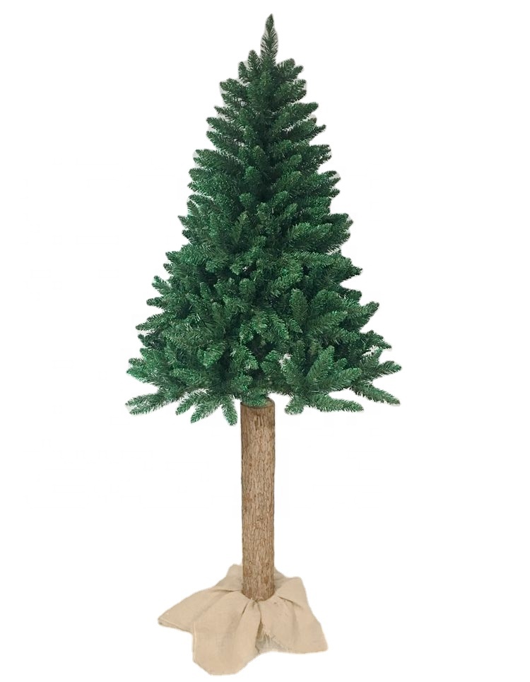 PVC New Arrival natural wooden pole line wrapped artificial green Christmas tree