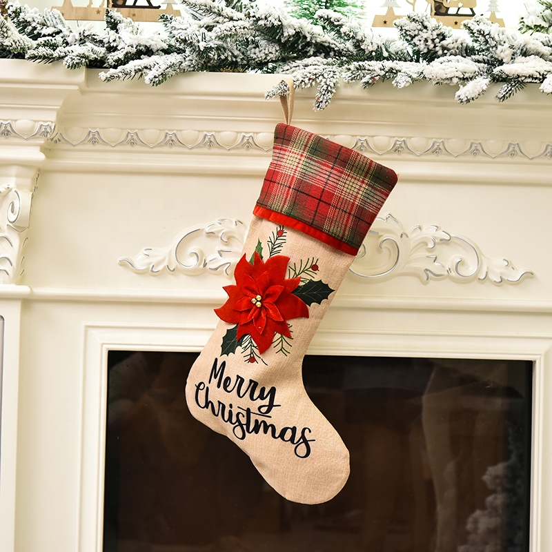 Santa Stocking Sock Candy Bags Christmas Tree Ornaments Pendants Linen Gift Bag For Children Fireplace Hanging Decor
