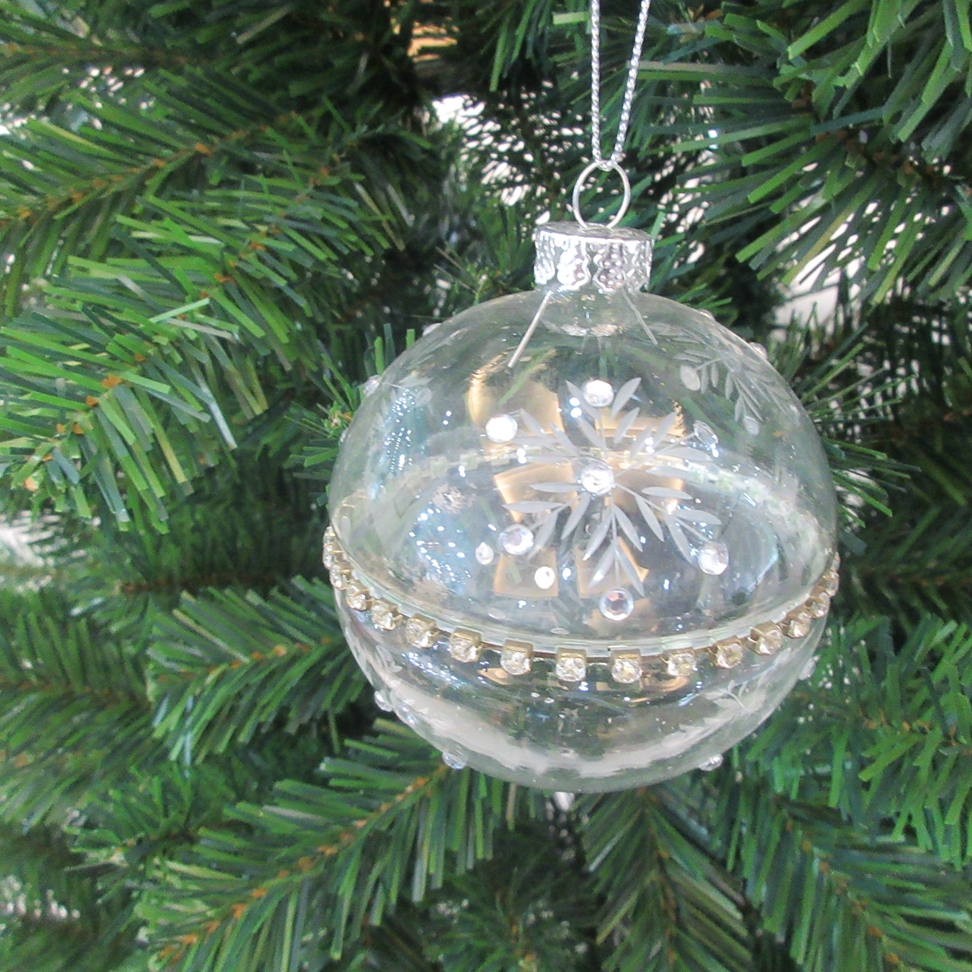 Sparkly Christmas Decorations 3 inch /3.5 inch Christmas Decoration Transparent Glass Ball Inlaid With Brick Christmas Ball