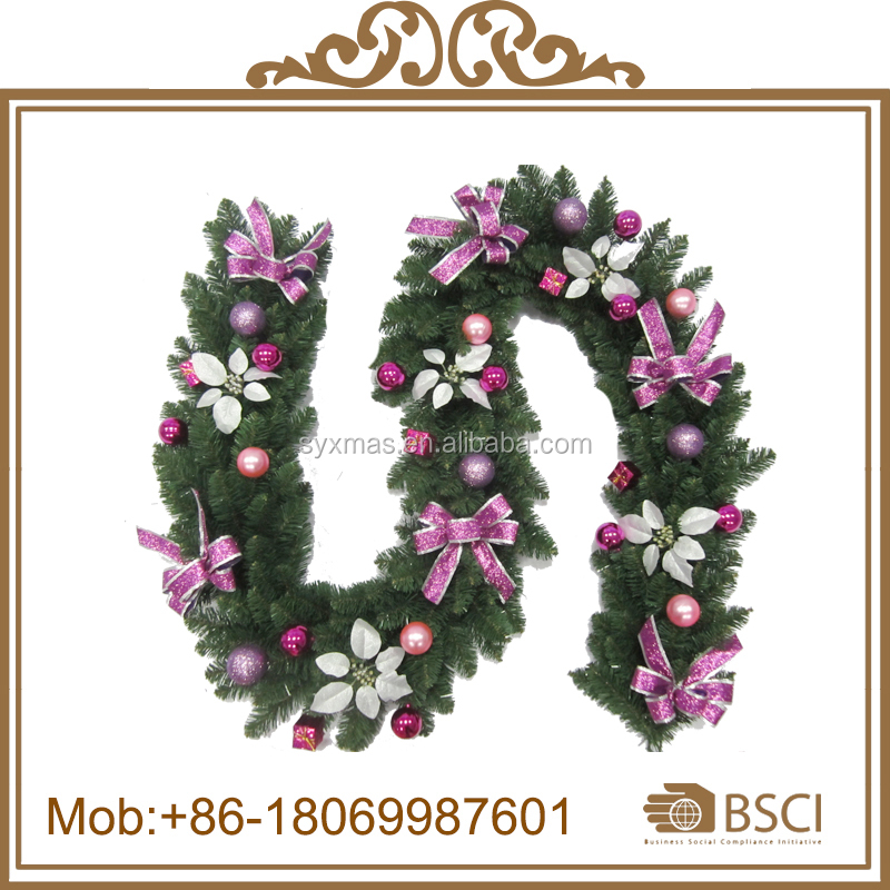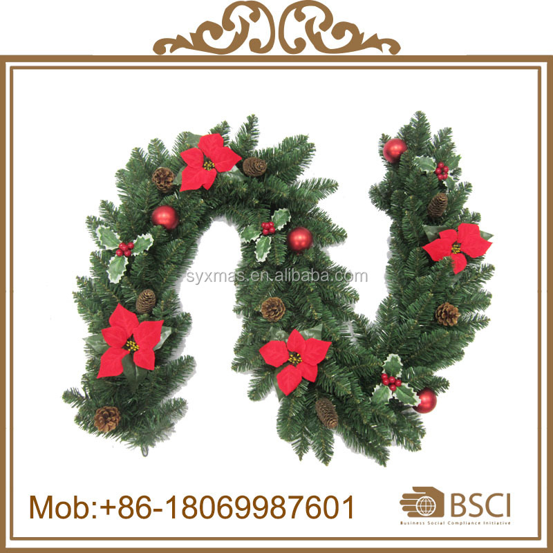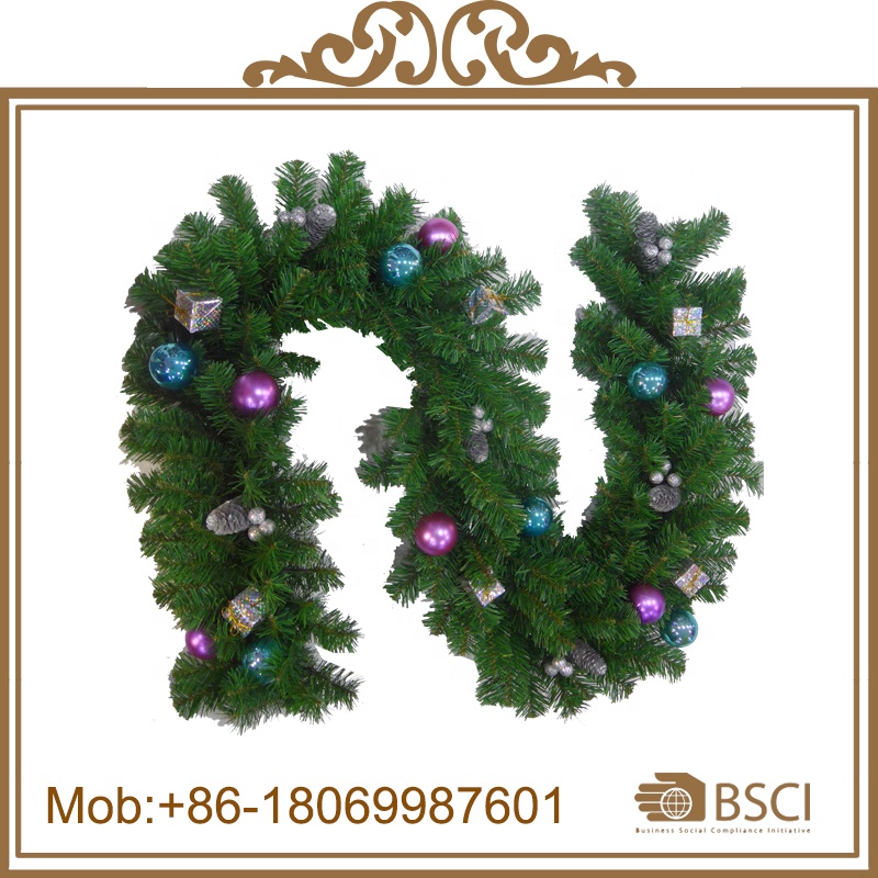 Wholesale 200cm Artificial Christmas Garland with pine cone&balls decorated