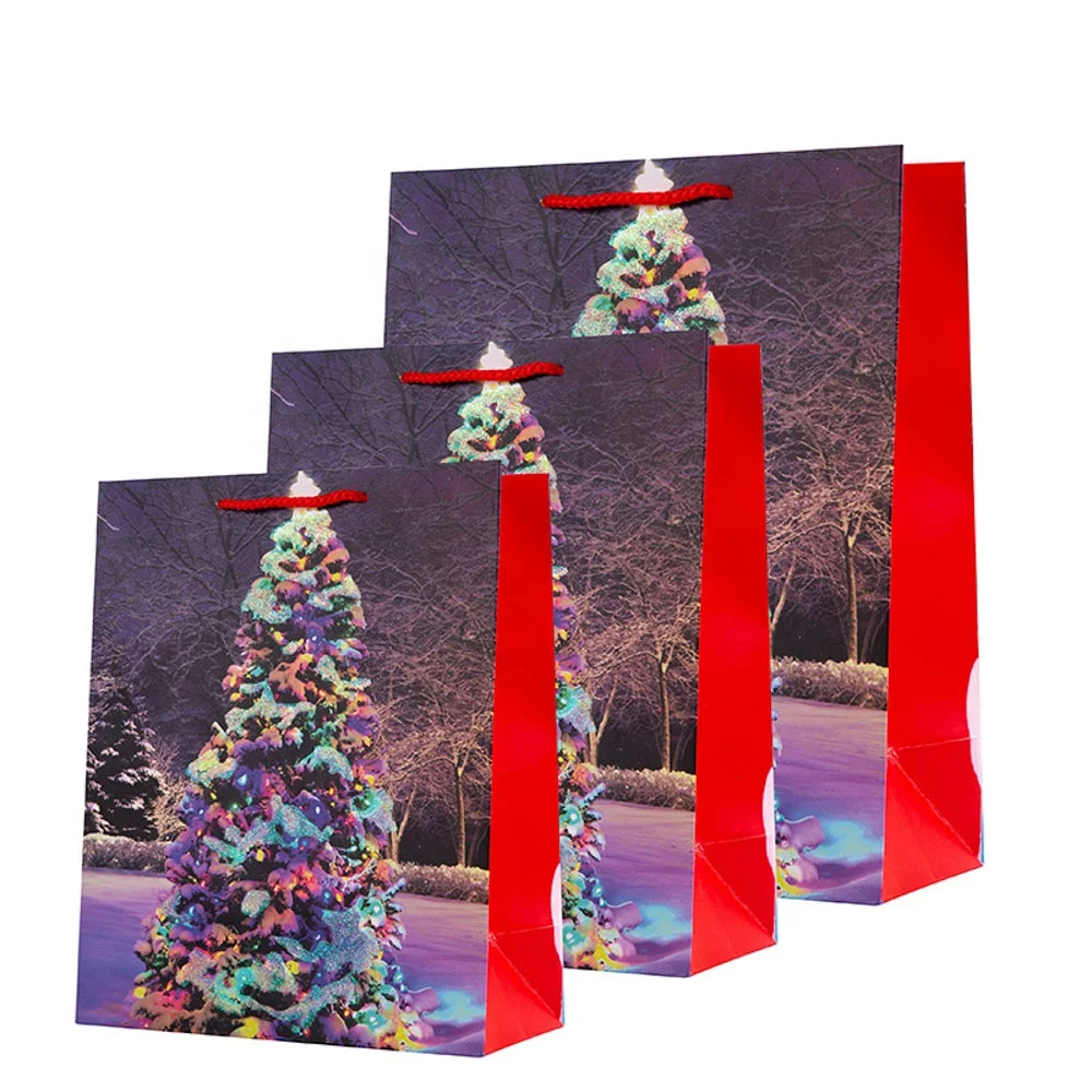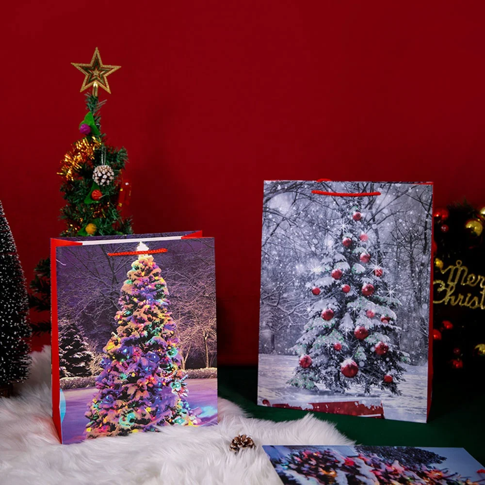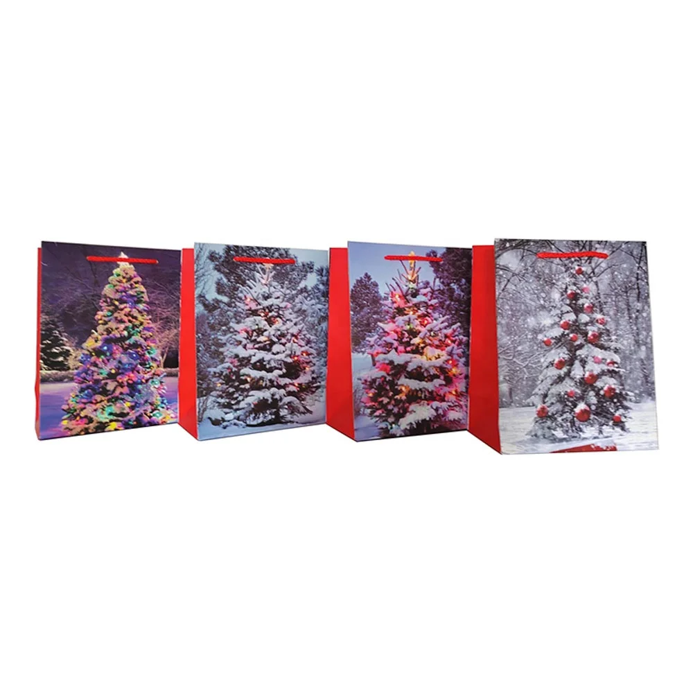 Wholesale Cheap Christmas Elements Ivory Board Bag 4 Design Mix Christmas Paper Gift Bag Shopping bag