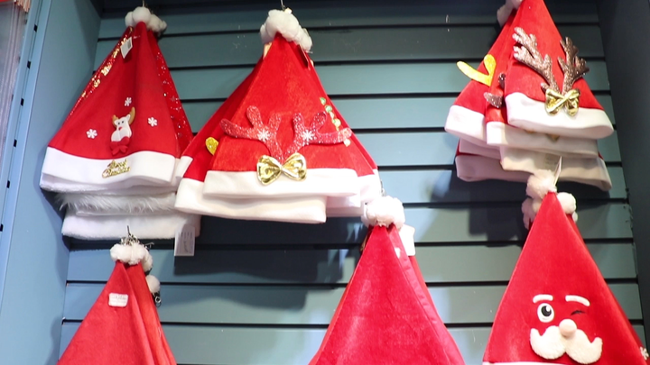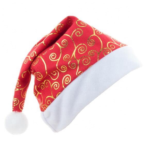 Wholesale red printed christmas children adult hat christmas decoration fabric hat